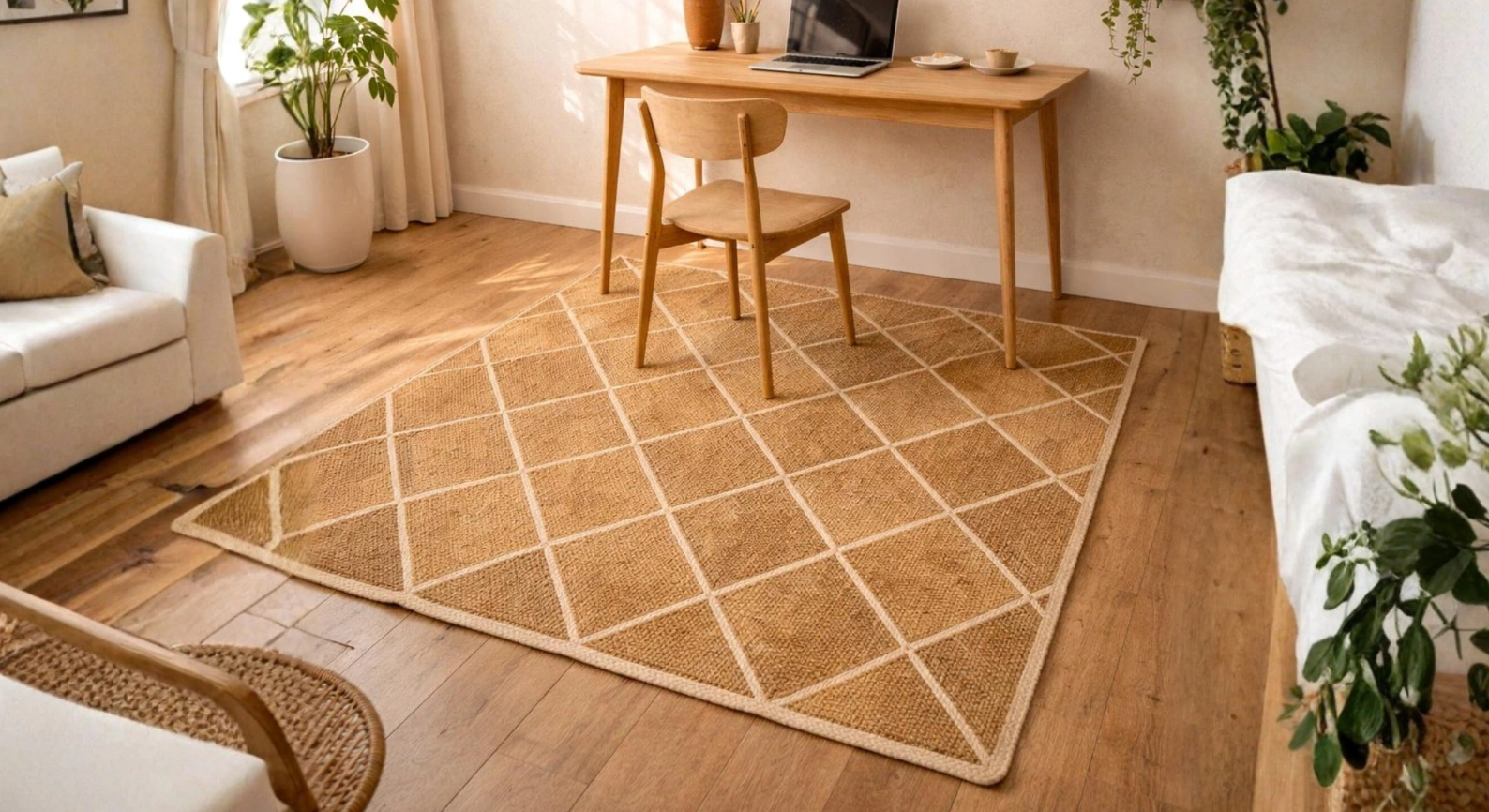 Refresh your space with this handwoven rectangular jute carpet featuring a sleek chequered pattern. Crafted from natural jute fibers, this rug combines understated design with rich organic texture, making it a perfect foundation for modern boho, coastal, Scandinavian, and earthy interiors.