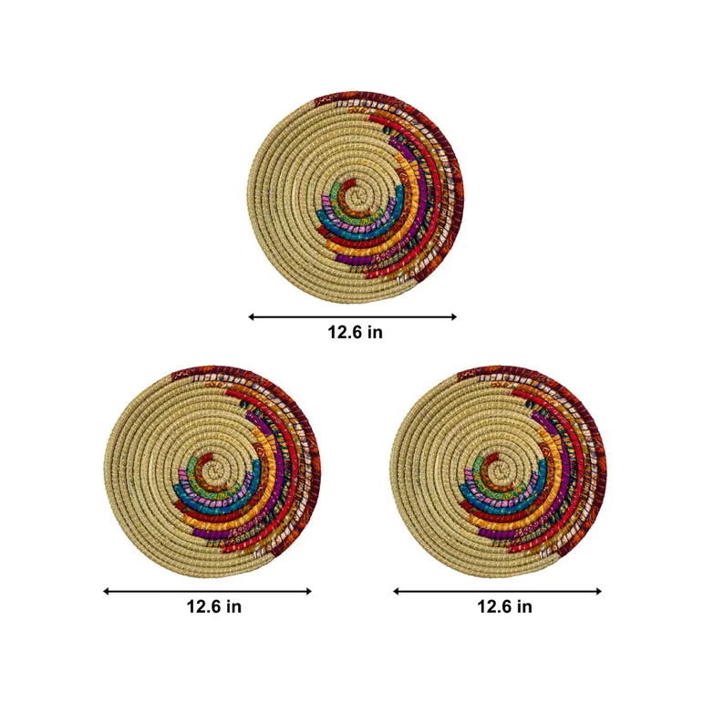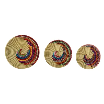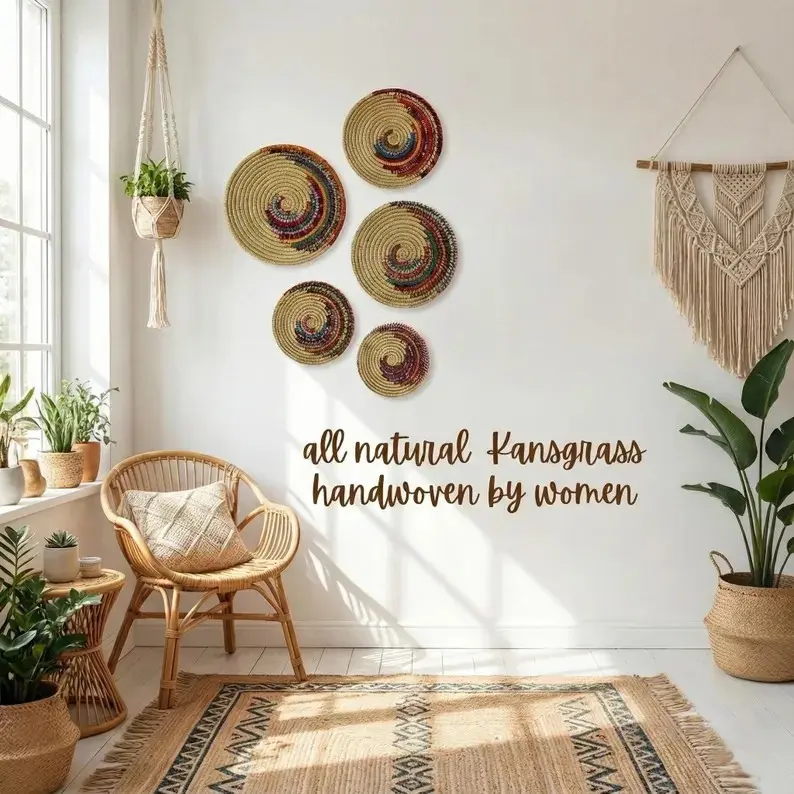 Add warmth, personality, and cultural richness to your home with this Set of 5 Boho Multicolor Kansgrass Wall Mats. Each piece is carefully handwoven from natural kansgrass fibers and dyed in vibrant, earthy hues, creating a visually striking wall display that feels both artistic and organic.